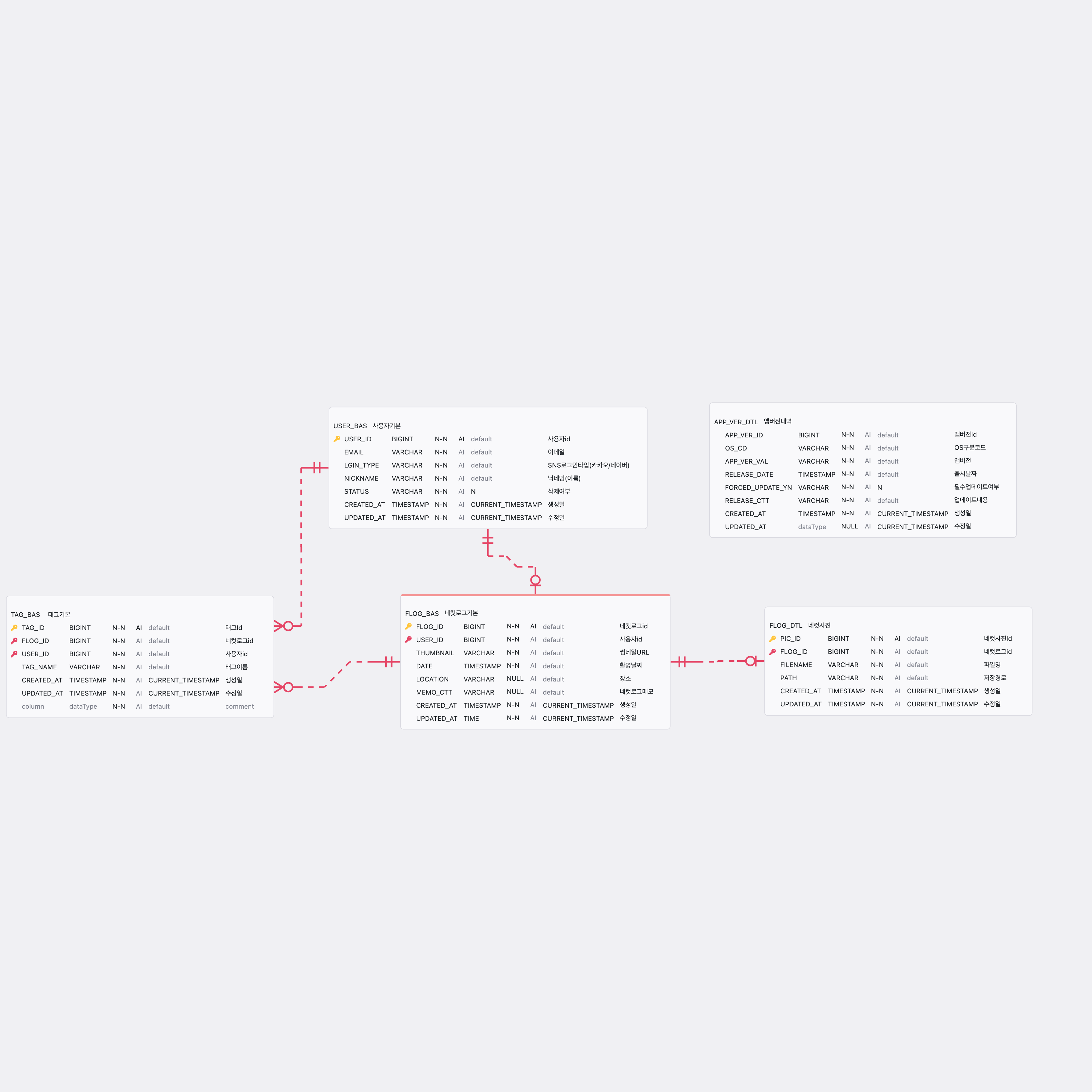 원래는 ERD Cloud 라는 무료 웹사이트에서 작성했는데 디자인이 너무 맘에 안들어서 더 깔끔한 ui를 찾다가 발견했고 깔끔하면서 보기 좋아서 이걸 사용하기로 !