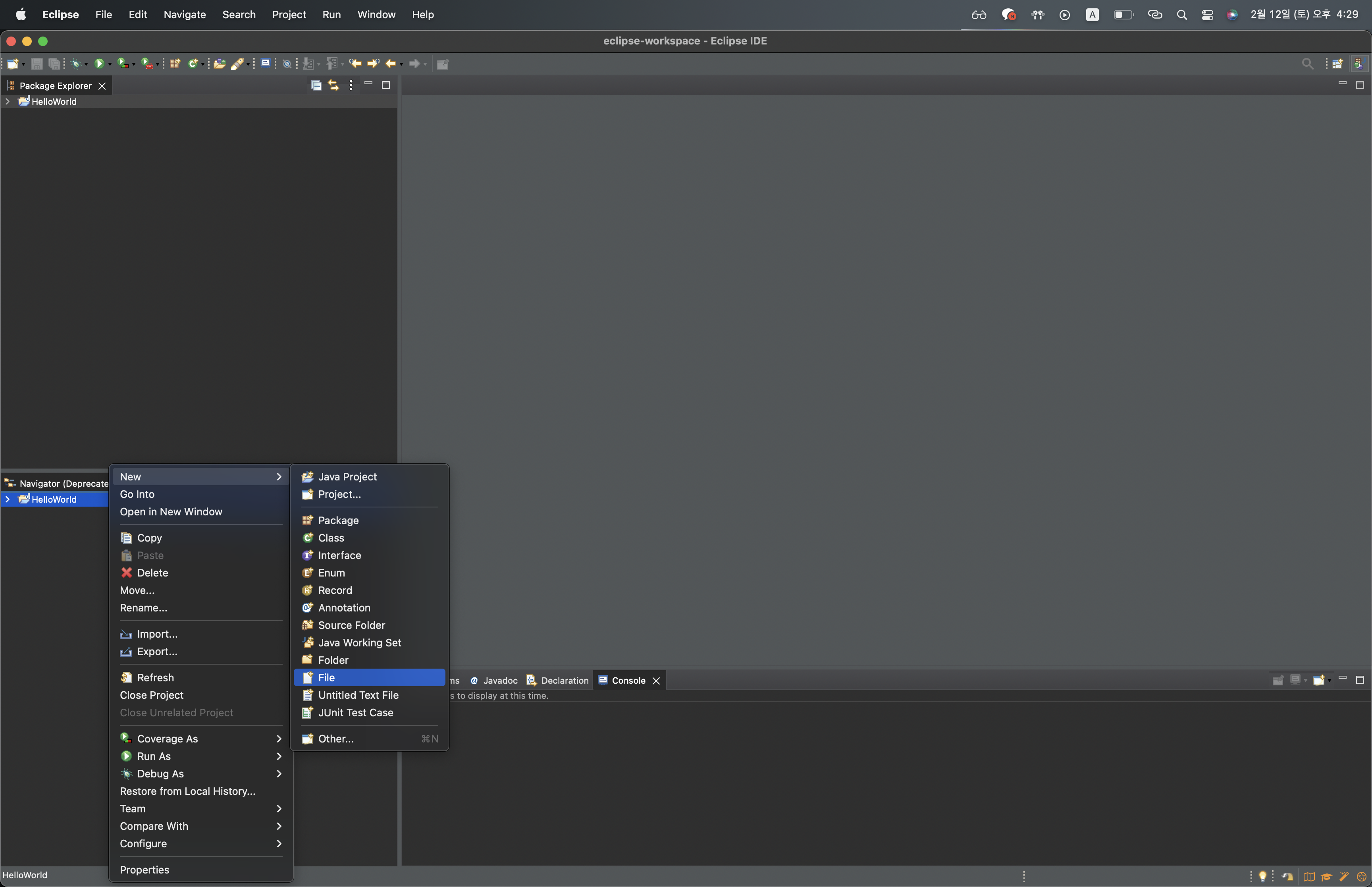 HelloWorld 파일을 우클릭해서 새로운 파일을 하나 생성해줍니다.