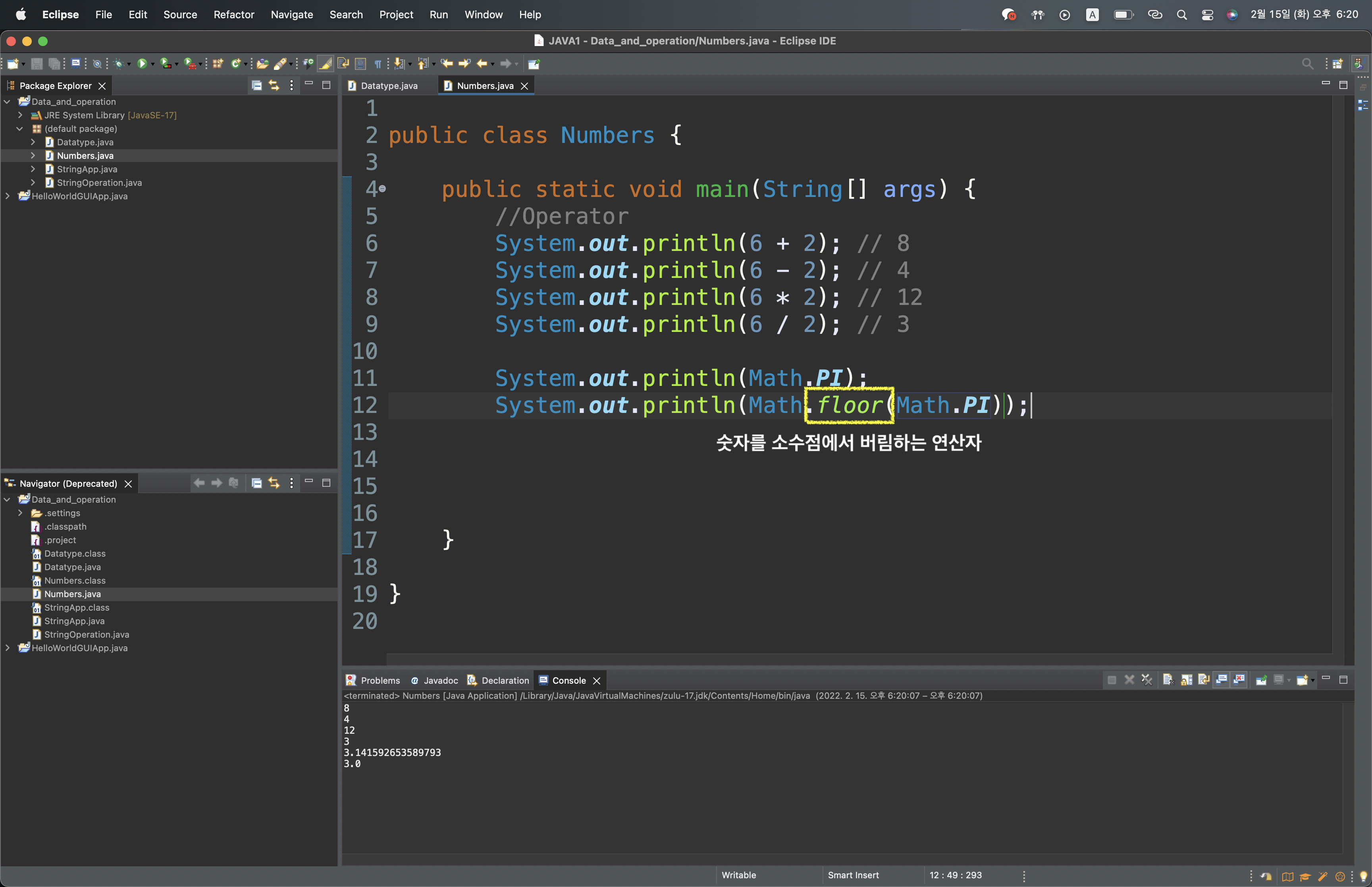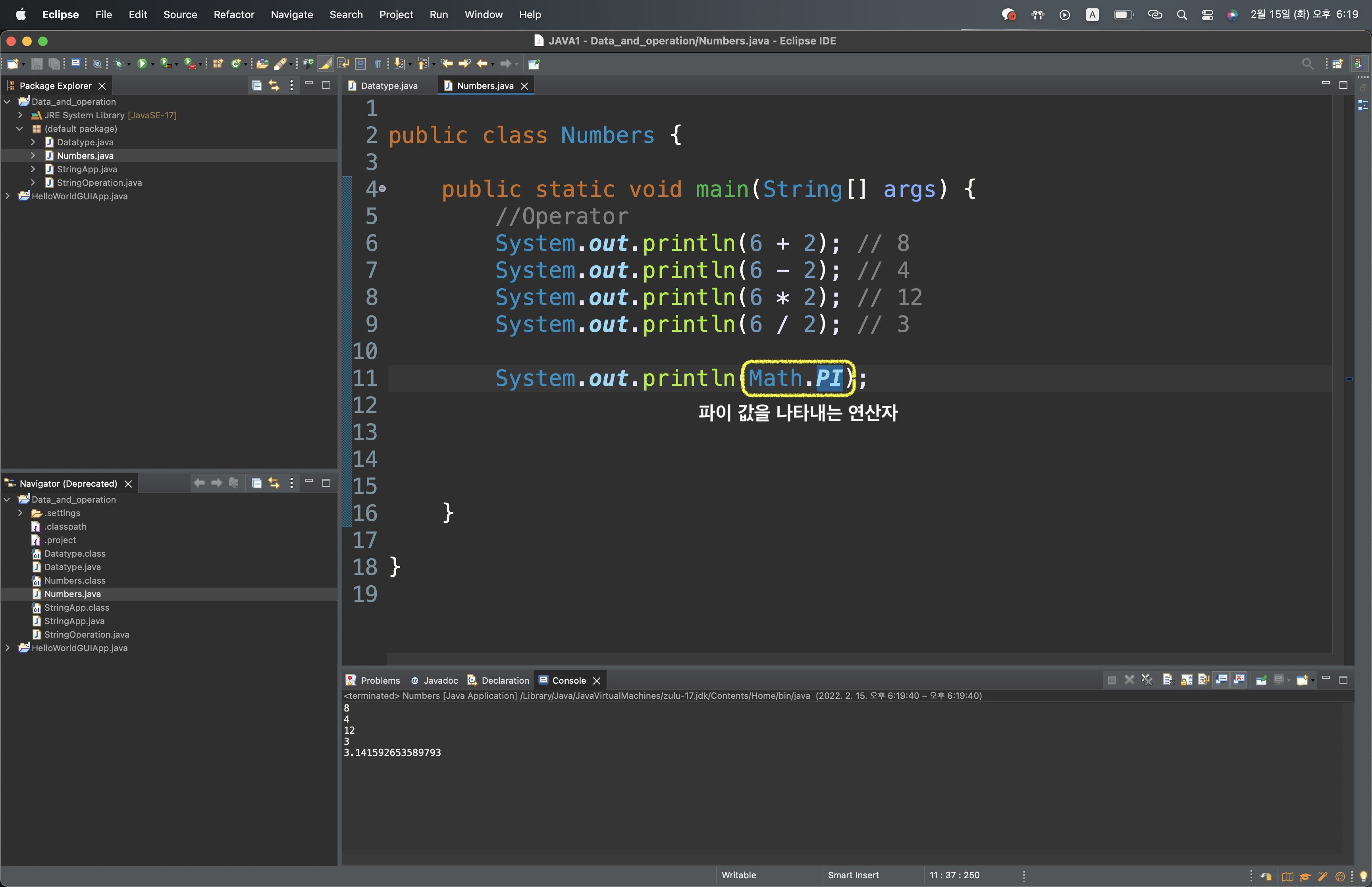 -이클립스에서는 수학과 관련된 다양한 연산자가 들어있는 Math라는 캐비넷을 제공합니다.