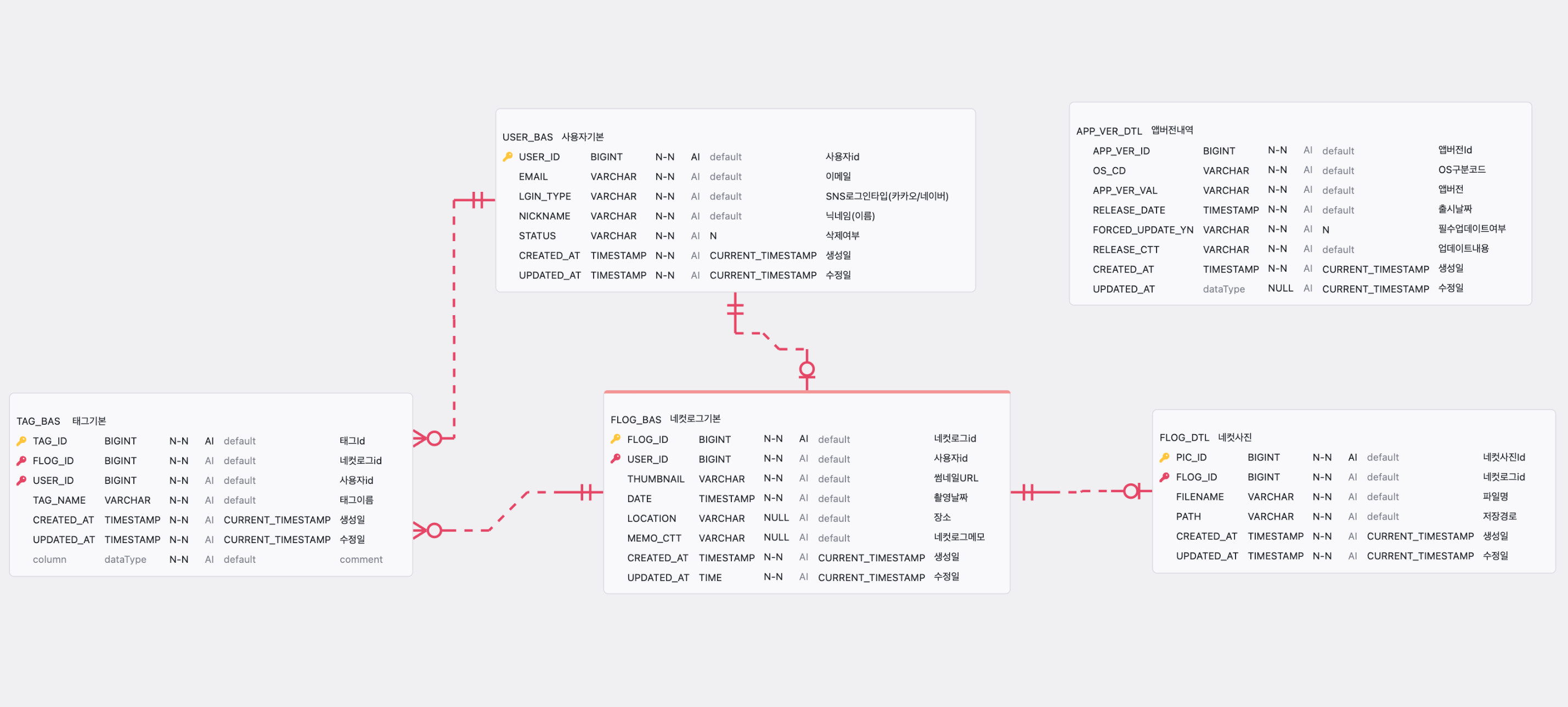 원래는 ERD Cloud 라는 무료 웹사이트에서 작성했는데 디자인이 너무 맘에 안들어서 더 깔끔한 ui를 찾다가 발견했고 깔끔하면서 보기 좋아서 이걸 사용하기로 !